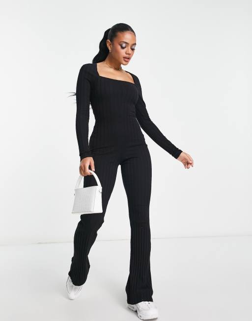 ASOS DESIGN - Ribstrikket sort jumpsuit med firkantet hals