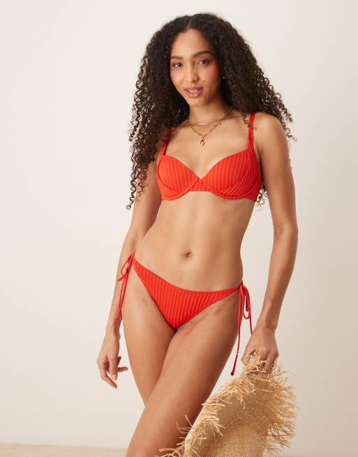 ASOS DESIGN - Riddy - Rød ribstrikket bikinitop med bøjle og polstring