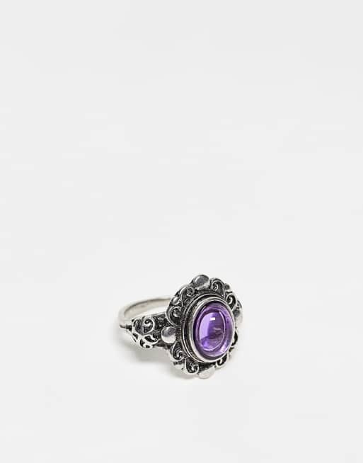 ASOS DESIGN - Ring med cabochon-sten i poleret sølvfarve