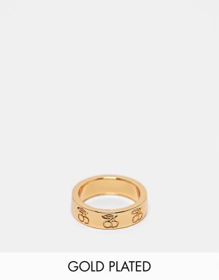 ASOS DESIGN - Ring med graveret kirsebærdesign i 14 karat guldbelægning