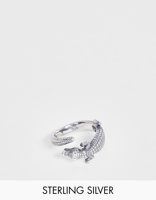 ASOS DESIGN - Ring med krokodilledesign i sterlingsølv