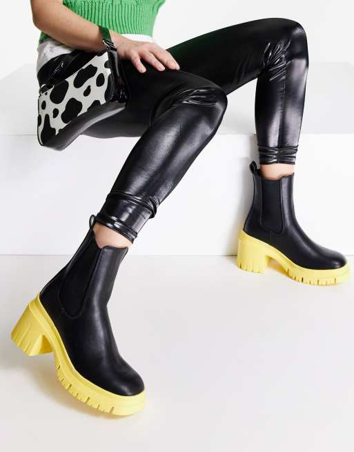 ASOS DESIGN - Rio - Sorte og gule Chelsea-støvler med mellemhøj hæl
