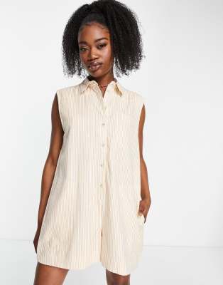 ASOS DESIGN - Ærmeløs buksedragt med neutrale striber