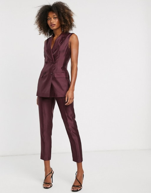 ASOS DESIGN - Ærmeløst suit i tekstureret satin