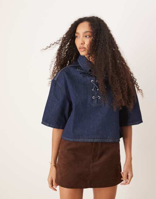 ASOS DESIGN - Rugby-top med snøredetalje foran i denim