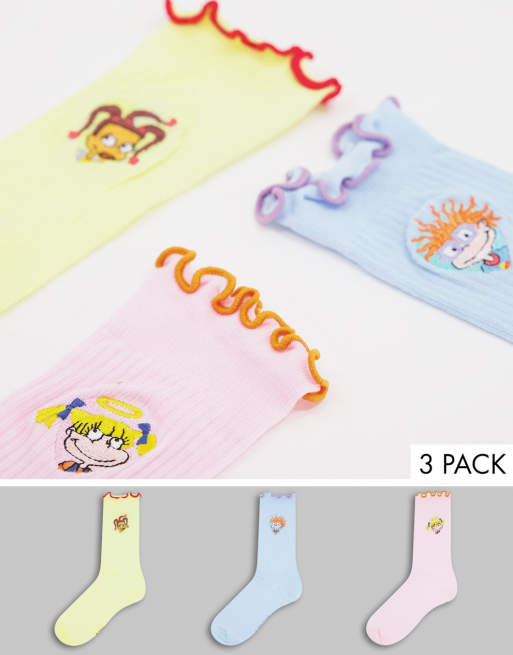 ASOS DESIGN - Rugrats - Pakke med 3 par sokker med flæsetop i forskellige farver
