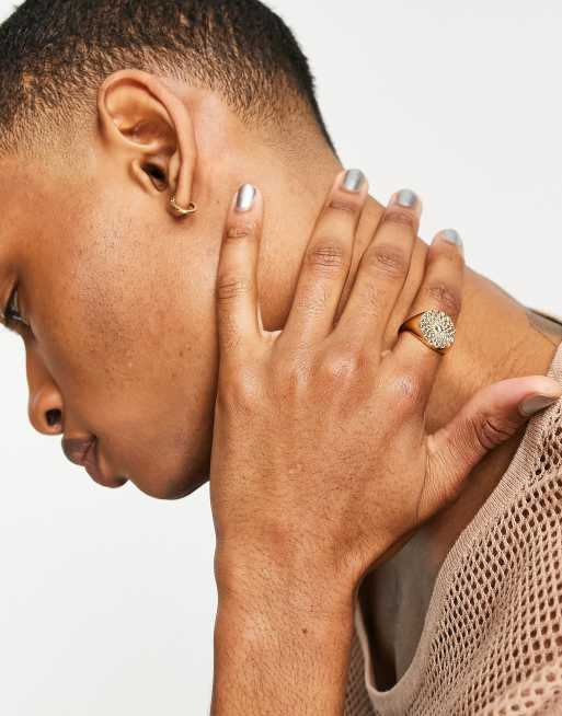 ASOS DESIGN - Rund signetring med takket prægning i guldfarve