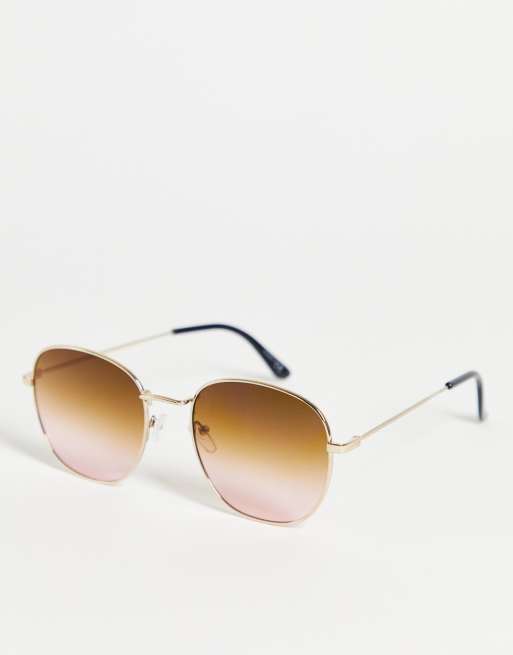 ASOS DESIGN - Runde metalsolbriller i guld med brune glas