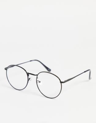 ASOS DESIGN - Runde modebriller i sort med klare glas