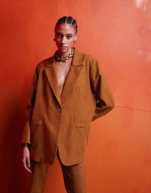 ASOS DESIGN - Rustfarvet oversized blazer i imiteret ruskind - Del af sæt
