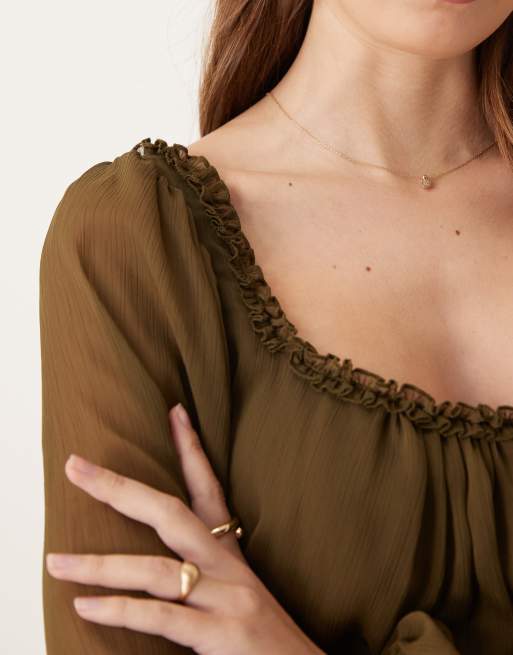 ASOS DESIGN - Rustfarvet smock-minikjole med flæsehals