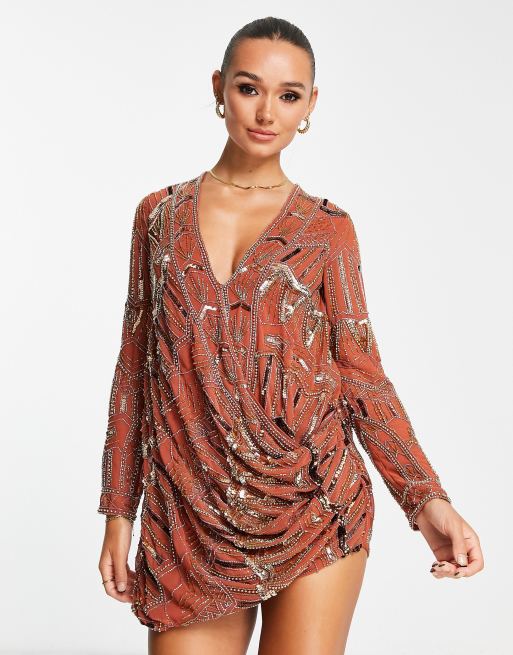 ASOS DESIGN - Rustrød shift-minikjole med udsmykninger og draperede detaljer foran