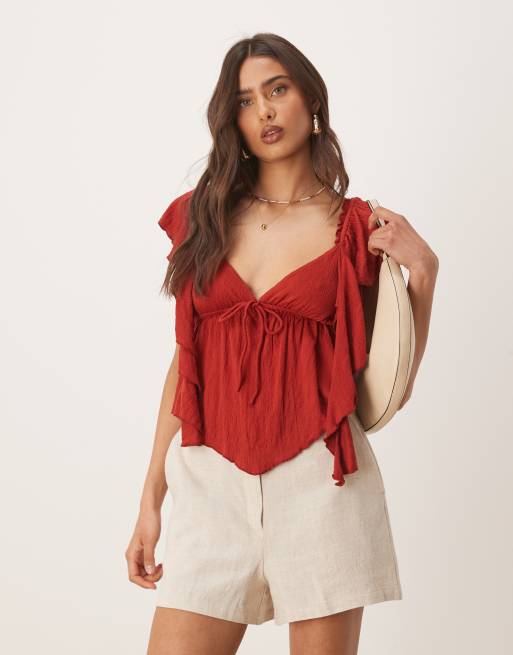 ASOS DESIGN - Rustrød top med åben ryg og flagrende ærmer i krølstof