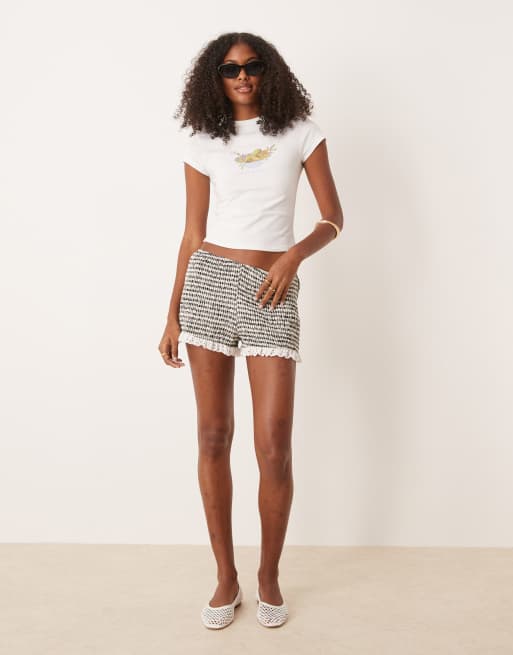 ASOS DESIGN - Rynkede og korte shorts med blondekanter og gingham-tern