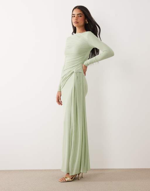 ASOS DESIGN - Salviegrøn langærmet maxikjole i mesh
