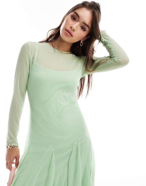 ASOS DESIGN - Salviegrøn midaxikjole i transparent chiffon med teltdesign