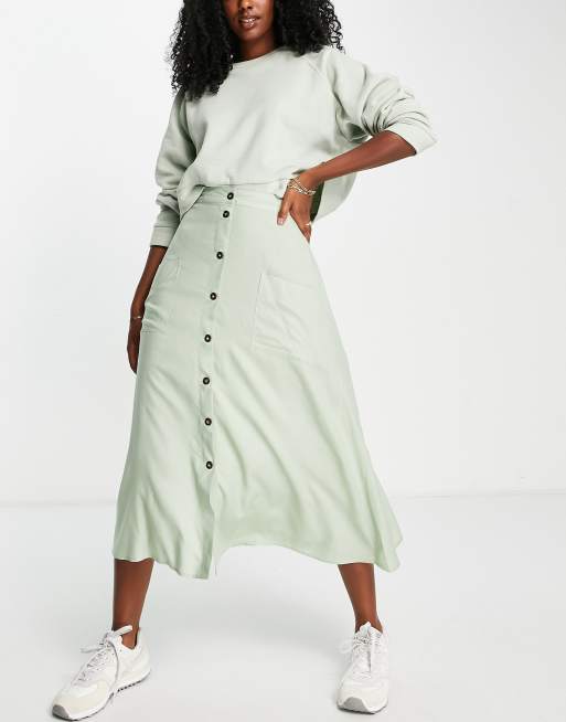 ASOS DESIGN - Salviegrøn midinederdel med knapper og lomme