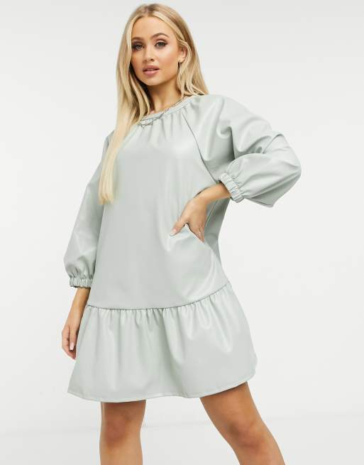 ASOS DESIGN - Salviegrøn mini-smockkjole i læderlook