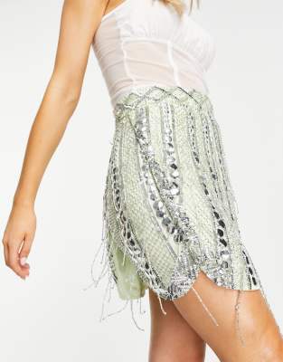 ASOS DESIGN - Salviegrøn mininederdel med buet kant og perler