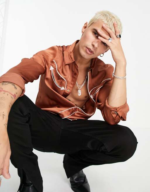 ASOS DESIGN - Satinskjorte med 70'er-inspireret western-design