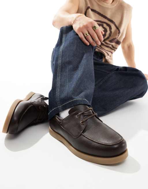 ASOS DESIGN - Sejlersko med snørebånd i brunt læder