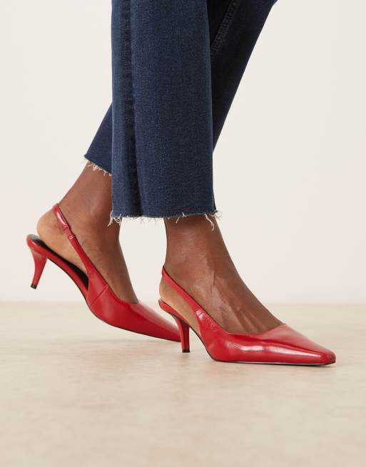 ASOS DESIGN - Shake - Røde sko med mellemhøj hæl og hælrem samt spids tå