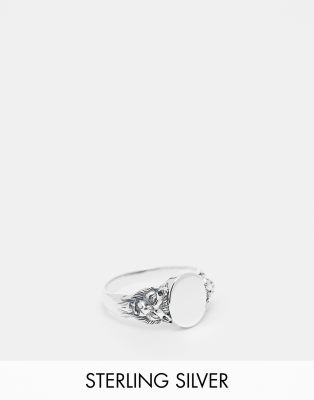 ASOS DESIGN - Signetring med løvedesign i brændt sterlingsølv