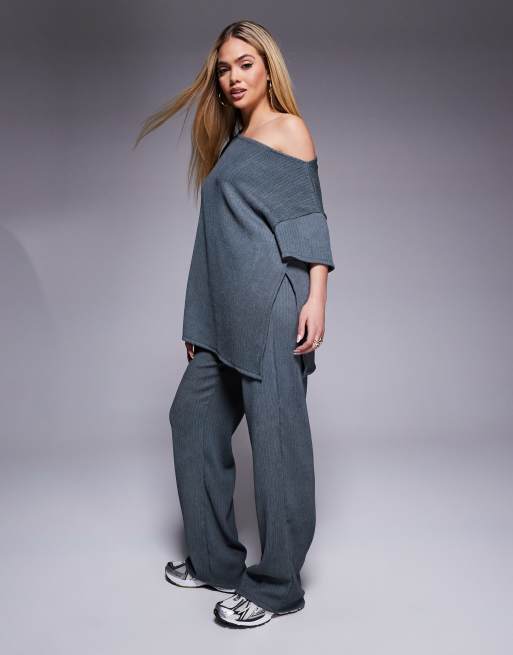 ASOS DESIGN - Skifergråt sæt med tekstur i krølstof