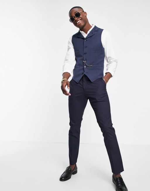 ASOS DESIGN - Skinny-blazer med guldknapper i marineblå