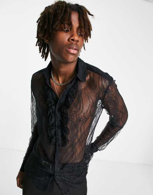 ASOS DESIGN - Skinny blondeskjorte med flæser foran i sort