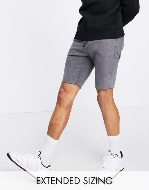 ASOS DESIGN - Skinny-denimshorts i grå med rå buksekanter