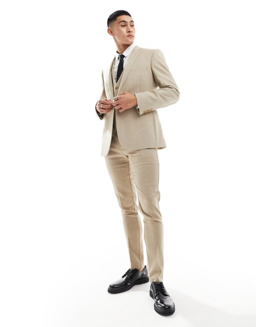 ASOS DESIGN - Skinny fit-jakkesæt i kamelbrun og kurveflettet uldblanding