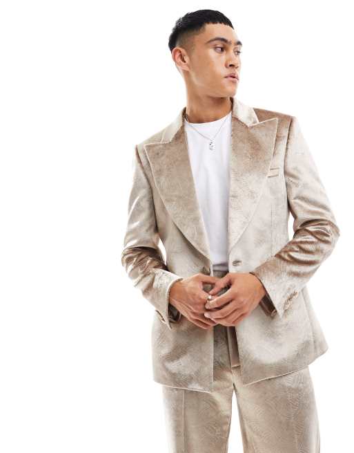 ASOS DESIGN - Skinny-habitjakke med bred reverskrave og prægninger i guldfarvet velour