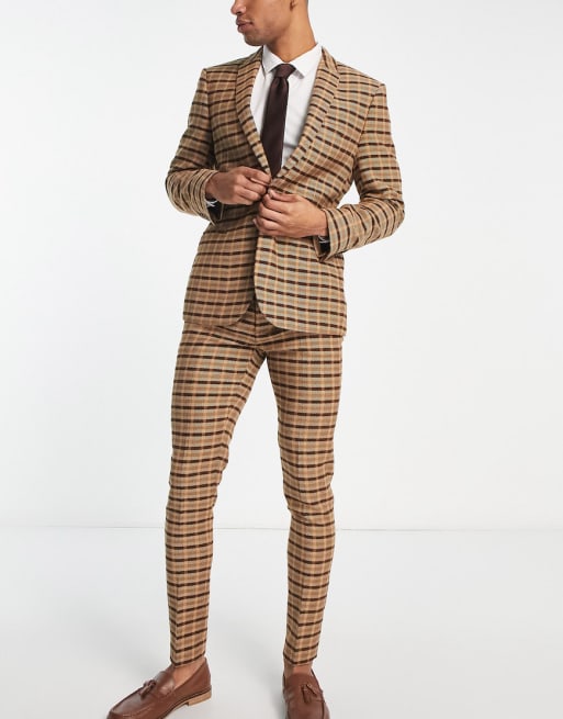 ASOS DESIGN - Skinny-jakkesæt med brune tern i uldblanding