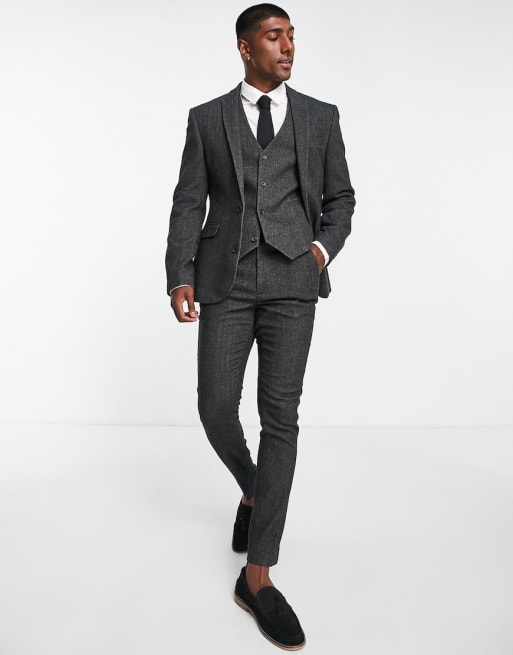 ASOS DESIGN - Skinny-jakkesæt med sildebensmønster i koksgrå uldblanding