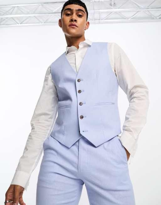 ASOS DESIGN - Skinny-vest i pastelblå hørblanding