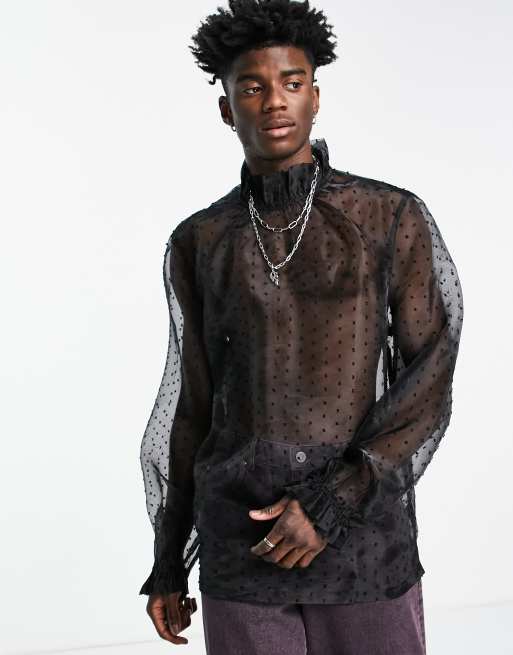 ASOS DESIGN - Skjorte i gennemsigtig dobby-mesh med flæsehals og ærmer