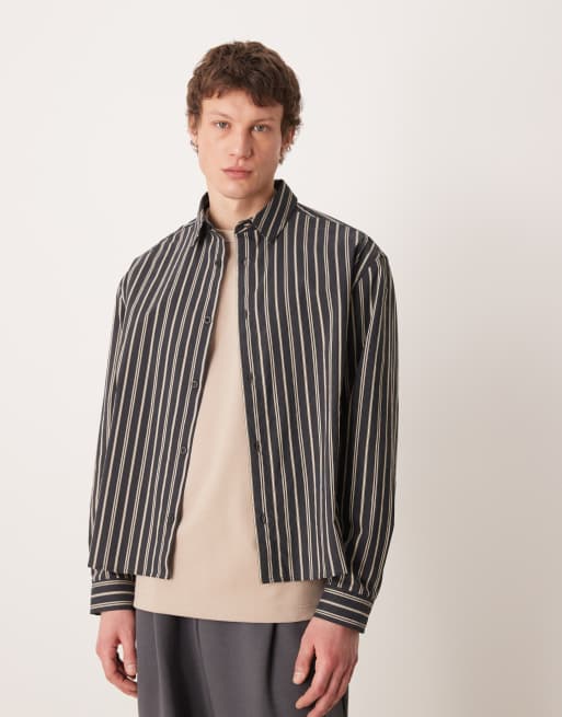 ASOS DESIGN - Skjorte med sort/beige striber og firkantet pasform