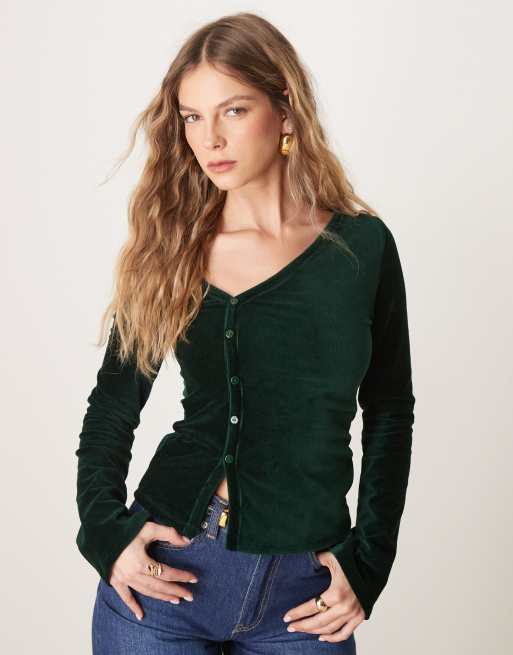 ASOS DESIGN - Skovgrøn fløjlstop med asymmetriske knapper