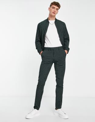 ASOS DESIGN - Skovgrønne elegante skinny-bukser med gittertern - Del af sæt