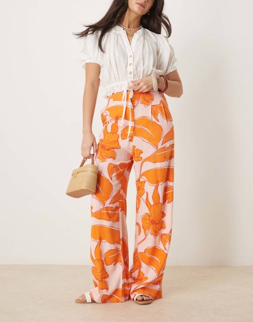 ASOS DESIGN - Skræddersyede bukser med høj talje, sømdetaljer og palmeprint i hørblanding - Del af sæt