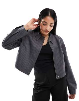 ASOS DESIGN - Skræddersyet koksgrå jakke med krave og striber