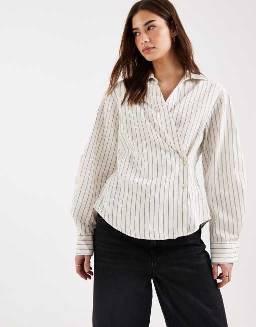 ASOS DESIGN - Slå om-skjorte med cocoon-ærmer og nålestriber