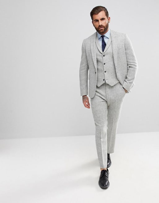 ASOS DESIGN Slank habit i 100% uld Harris Tweed Herringbone i lysegrå
