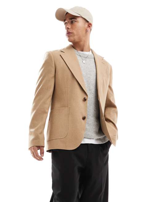 ASOS DESIGN - Slim-blazer i kamelbrunt flannel