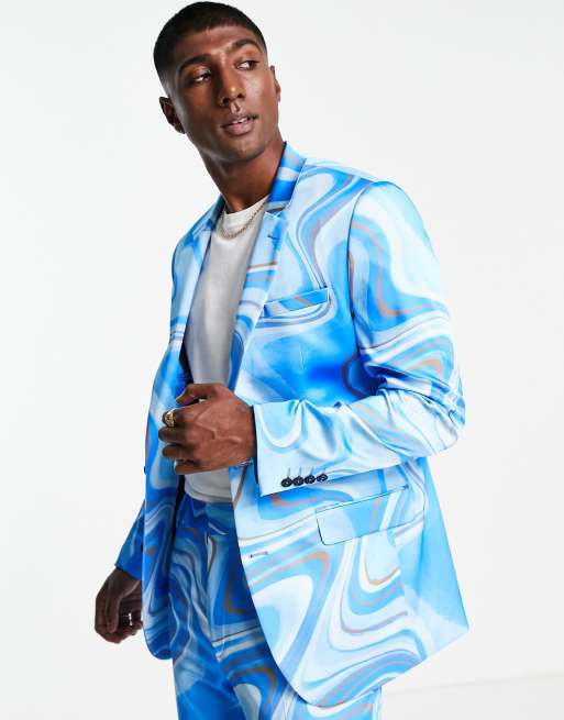 ASOS DESIGN - Slim habitjakke i tonet blå print