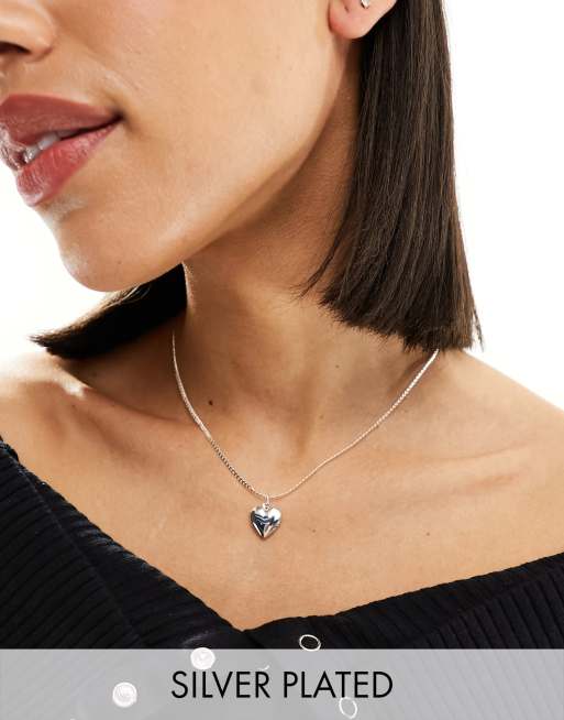 ASOS DESIGN - Sølvbelagt halskæde med tyk hjertemedalje