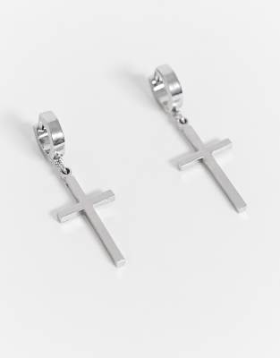 ASOS DESIGN - sølvfarvede 7mm hoop-øreringe med kors-vedhæng