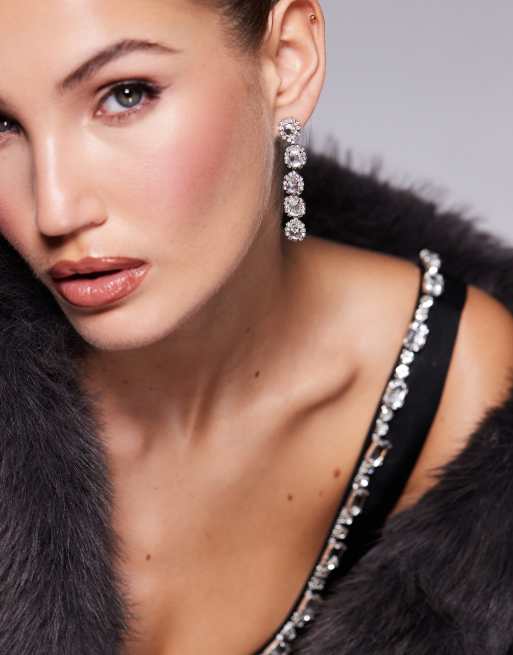 ASOS DESIGN - Sølvfarvede dråbeøreringe i blandet rektangel- og dråbekrystal-design