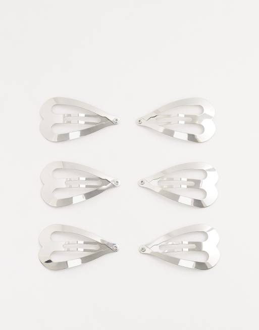 ASOS DESIGN - Sølvfarvede hjerteformede spænder i pakke med 6 stks